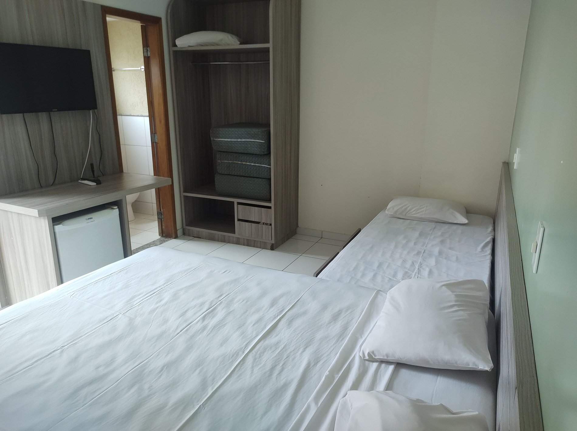 Suite hotel ambiente unico para 3 adultos e uma criança ate 5 anos.