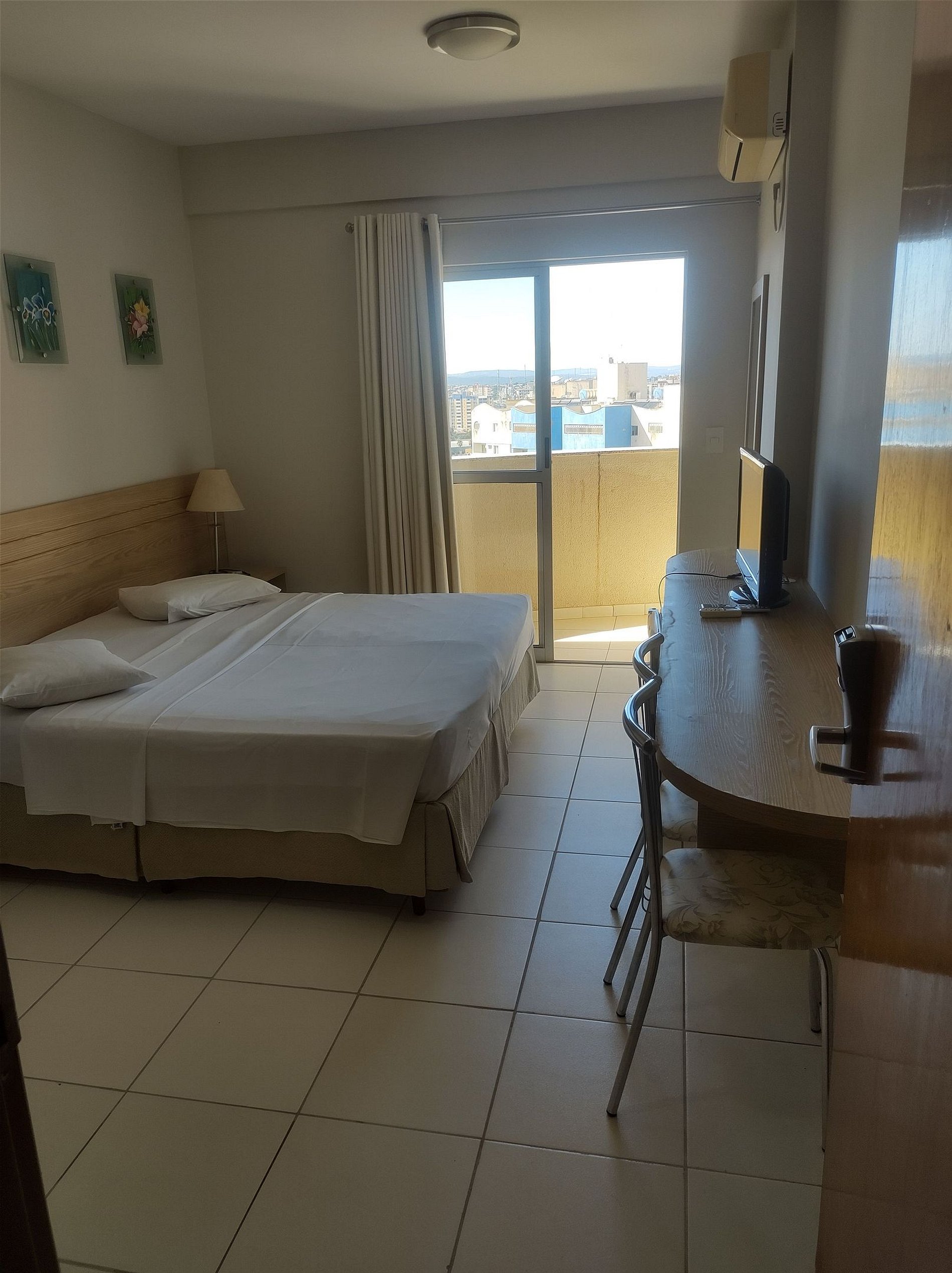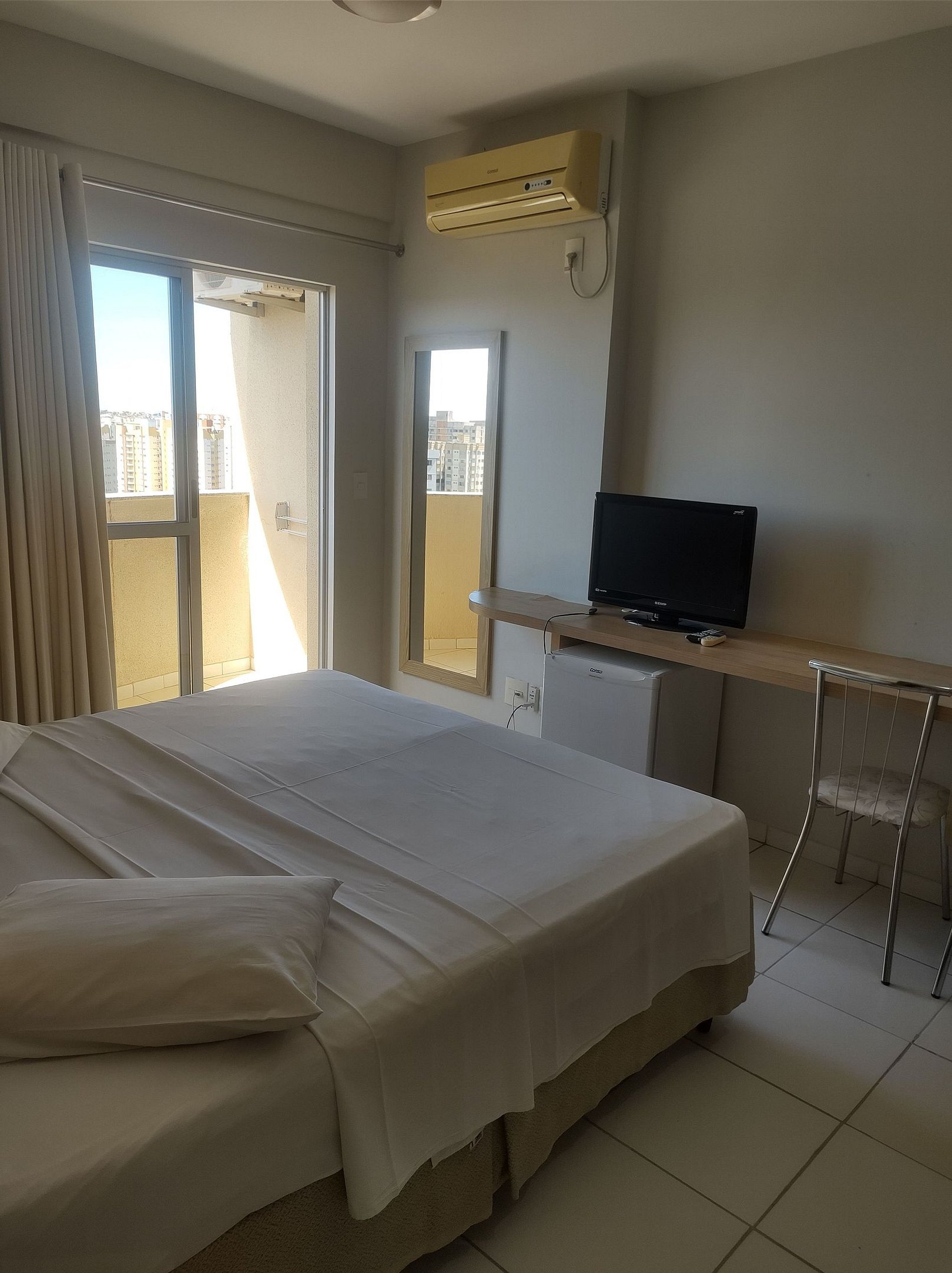 Suite hotel ambiente único, sem cozinha, sem quarto separado.